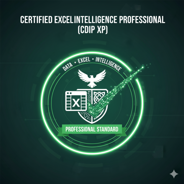This credential confirms professional-level mastery of Excel analytics — including data transformation, modeling, visualization, and automation — under the governance standards of the Council of Certified Data Intelligence Professionals (CDIPS).
